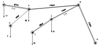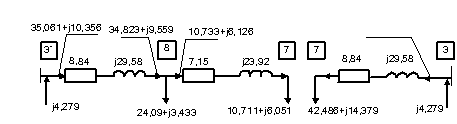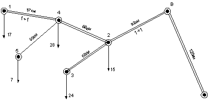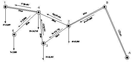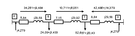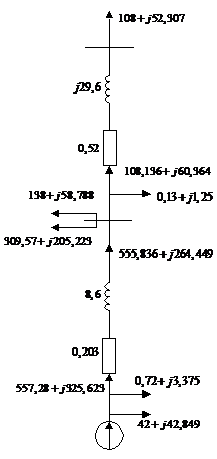 спроектированной сети с указанными на ней величинами мощностей, протекающих по