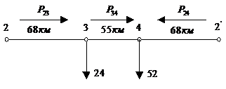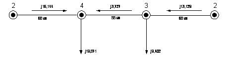 Распределение мощностей на кольцевом участке 2-3-4-2: