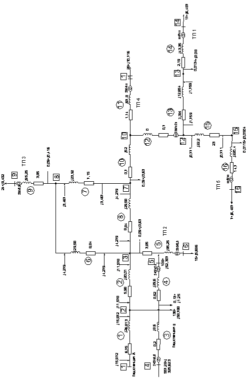 сети, по которой в дальнейшем был произведен расчет параметров режимов работы