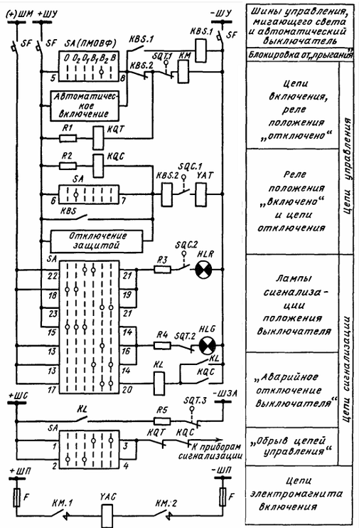 или электромагнита отключения в случае закорачивания обмоток KQT и KQC.