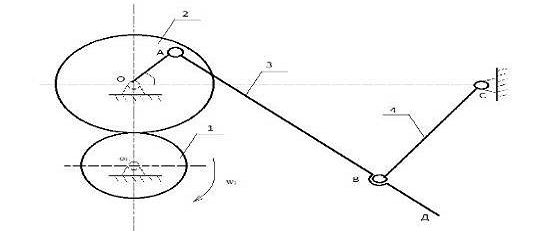 зубчатое колесо, звено 2 - большое зубчатое колесо с кривошипом OA,