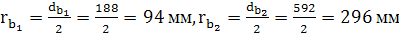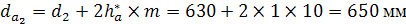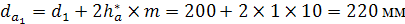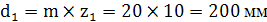 зубчатая передача с числами зубьев на колесах z1=20 и z2 =63, модулем m = 10 и