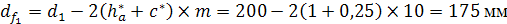 = делительный угол = 20°,