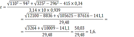 коэффициентами смещения x1=x2=0. Погрешность коэффициента перекрытия составила Δε=1,7%.