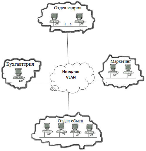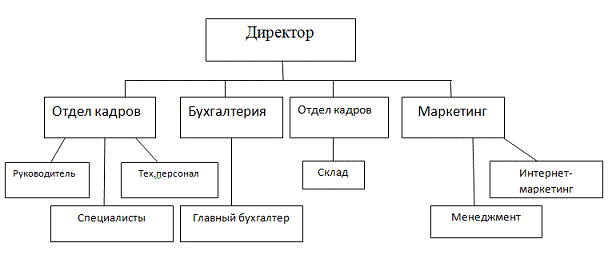 предприятия, бухгалтерию, отдел кадров, отдел по рекламе, склад. Все отделы