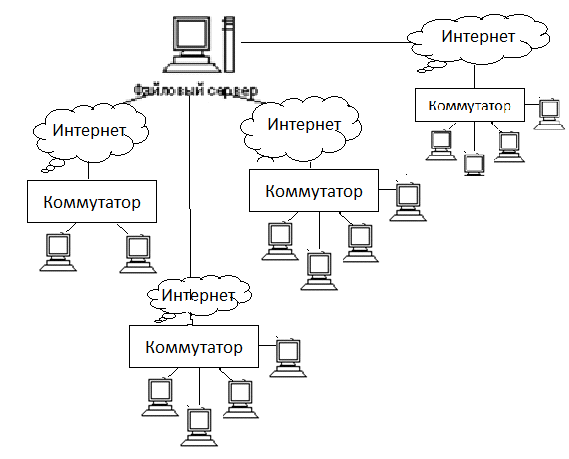 2 сетей и интернета концентратор. Рабочие станции и серверы были подобраны в