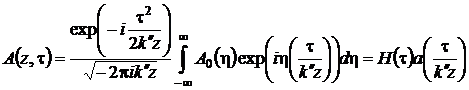 Прямой подстановкой можно показать, что амплитуда волнового пакета A(z, t) вида
