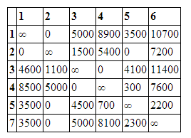 Г1,2=3500, Г2,1=3500, Г2,7=3500,