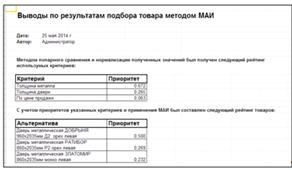работы СППР по подбору товаров по методу анализа иерархий
