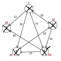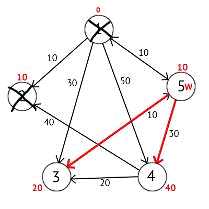 (2)+a(2,3)}=min{11; 5+9}=11 (4)=min{d(4); (2)+a(2,4)}=min{6; 5+12}=6