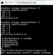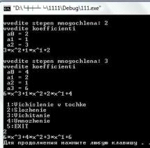 точке. При выборе пункта 2 - производится сложение многочленов. При выборе
