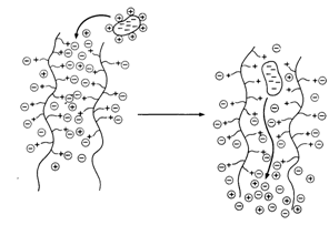 вещества удерживают его в растворе и белок приобретает отрицательный заряд.