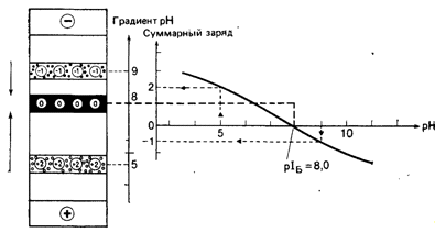 pH буфера, в котором находится белок, зависит суммарный заряд молекулы, а