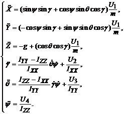 квадрокоптера описывается следующей системой дифференциальных уравнений: