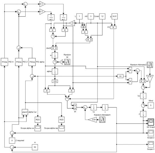 ПИД-регулятором (PID H) в зависимости от рассогласования по высоте.