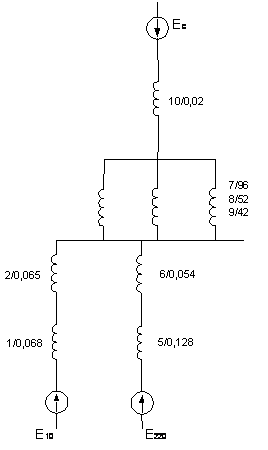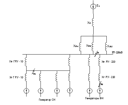 генераторов и значения высшего и среднего напряжения 220/10 В. Все исходные