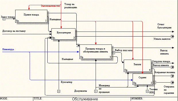 в стандарте IDEF0, в виде декомпозиции внешней модели. После описания контекста