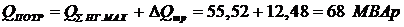 максимальной мощности нагрузки, потерь реактивной мощности в линиях, потерь