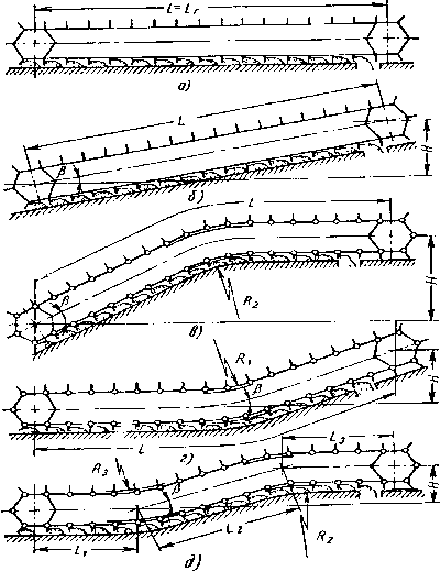 Рисунок 2 - Схемы трасс скребковых конвейеров с