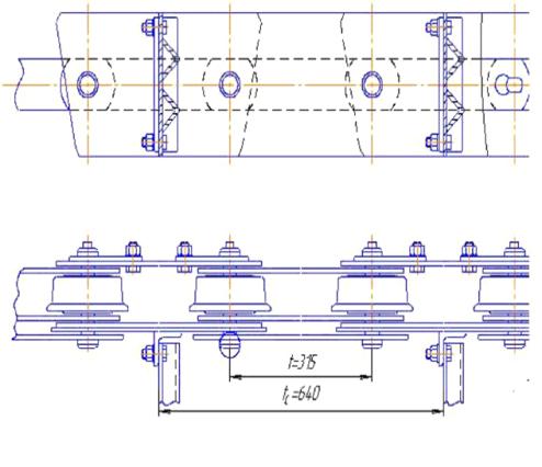 конвейеров с двумя тяговыми цепями (рисунок 3) или же с одной цепью, снабженной