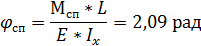 Определим угол скручивания спирали: