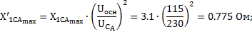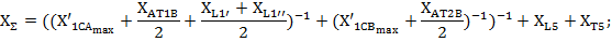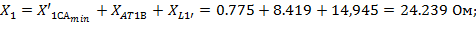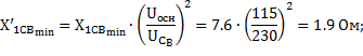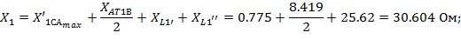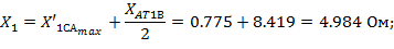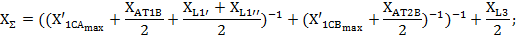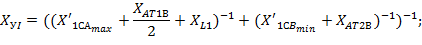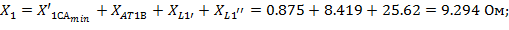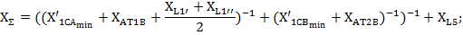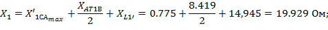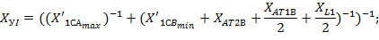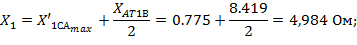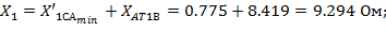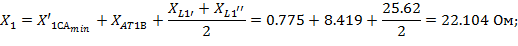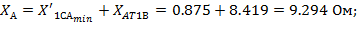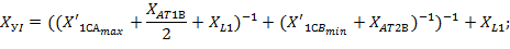 X1Bmax= 7.1 Ом; X1Bmin= 7.6 Ом; X0Bmax= 7 Ом; X0Bmin= 8 Ом.