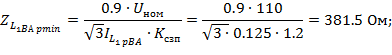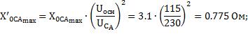 X1Аmax= 3.1 Ом; X1Amin= 3.5 Ом; X0Amax= 3.1 Ом; X0Аmin= 4 Ом;