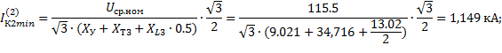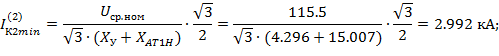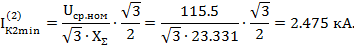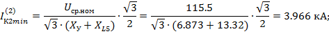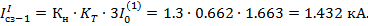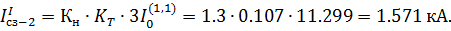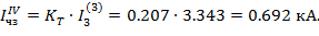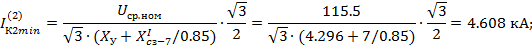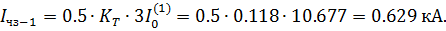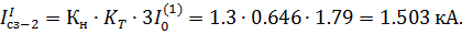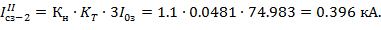 Ток был рассчитан выше, при проверке коэффициента чувствительности II ступени защиты 2. Тогда: