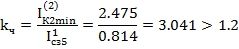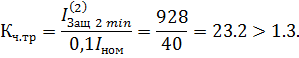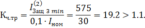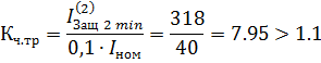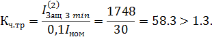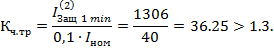 Проверим коэффициент чувствительности для данного тока срабатывания: