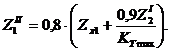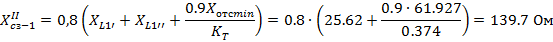 XIII=95 Ом, IIII=0.35 кА; XIV=165 Ом, IIV=0.2 кА, tIVZ=2.0 сек, tV0=1.6