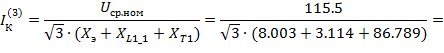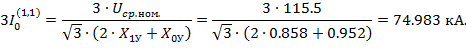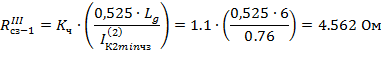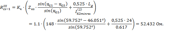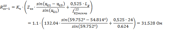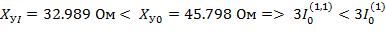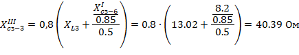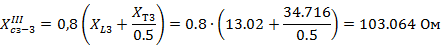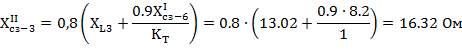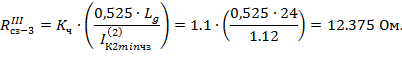кА, XII=16 Ом, III=0.5 кА, XIIIZ=90 Ом, IIII0=0.12 кА, tIIIZ=2.3 сек, tIII0=1.5