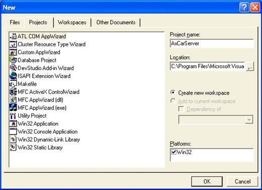Создать элемент управления ActiveX средствами