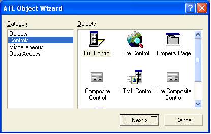 полного элемента управления в АТL начинается с мастера Object Wizard.