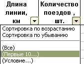 в столбце «Количество поездов» открываем фильтр , выбираем (Первые 10…)