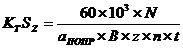 Кt - табличное значение удельной работы резания, Дж/см3;