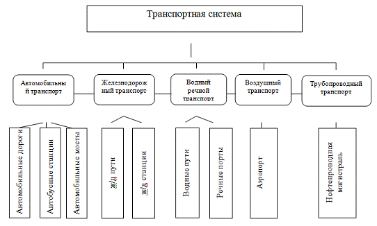 включает железнодорожный, автомобильный, воздушный, трубопроводный, внутренний