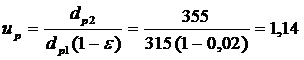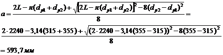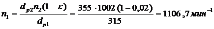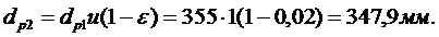 принимаем следующий за минимальным dp2=355 мм. Диаметр меньшего шкива