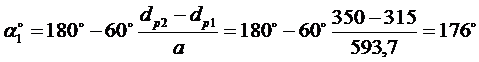 Угол обхвата на меньшем шкиве по формуле
