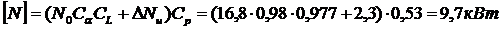 Коэффициент режима работы при указанной нагрузке Cр=0,53. Допускаемая мощность на один