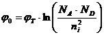 нескомпенсированным объемным зарядом ионов примесей, сосредоточенными по обе