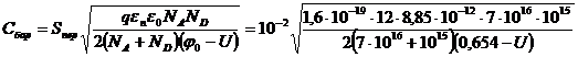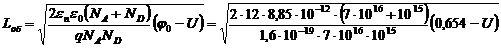 емкости и толщины обедненного слоя от напряжения обратного смещения перехода