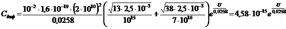 емкость возрастает экспоненциально при увеличении прямого напряжения. Барьерная