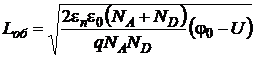 напряжения на переходе. Если обратное напряжение возрастает, то толщина