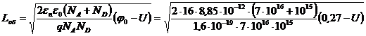Зависимость толщины обедненного слоя от напряжения кремниевого диода.