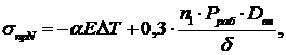 - рабочее (внутреннее) давление в трубопроводе, определяемое