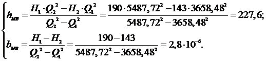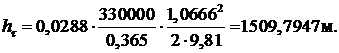 После этого аналитически определяем значения потери напора