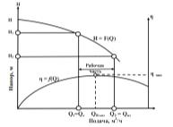 сам собой (автоматически) таким образом, что суммарный напор, развиваемый всеми