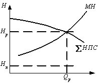 работающими насосами, равен напору, необходимому для ведения перекачки.
