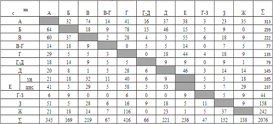 назначение Г-Е, исключаем из дальнейшего рассмотрения вагонопотоки n15,