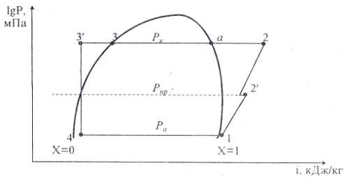 и qv строится цикл работы холодильной установки в координатах “P - i”. Для